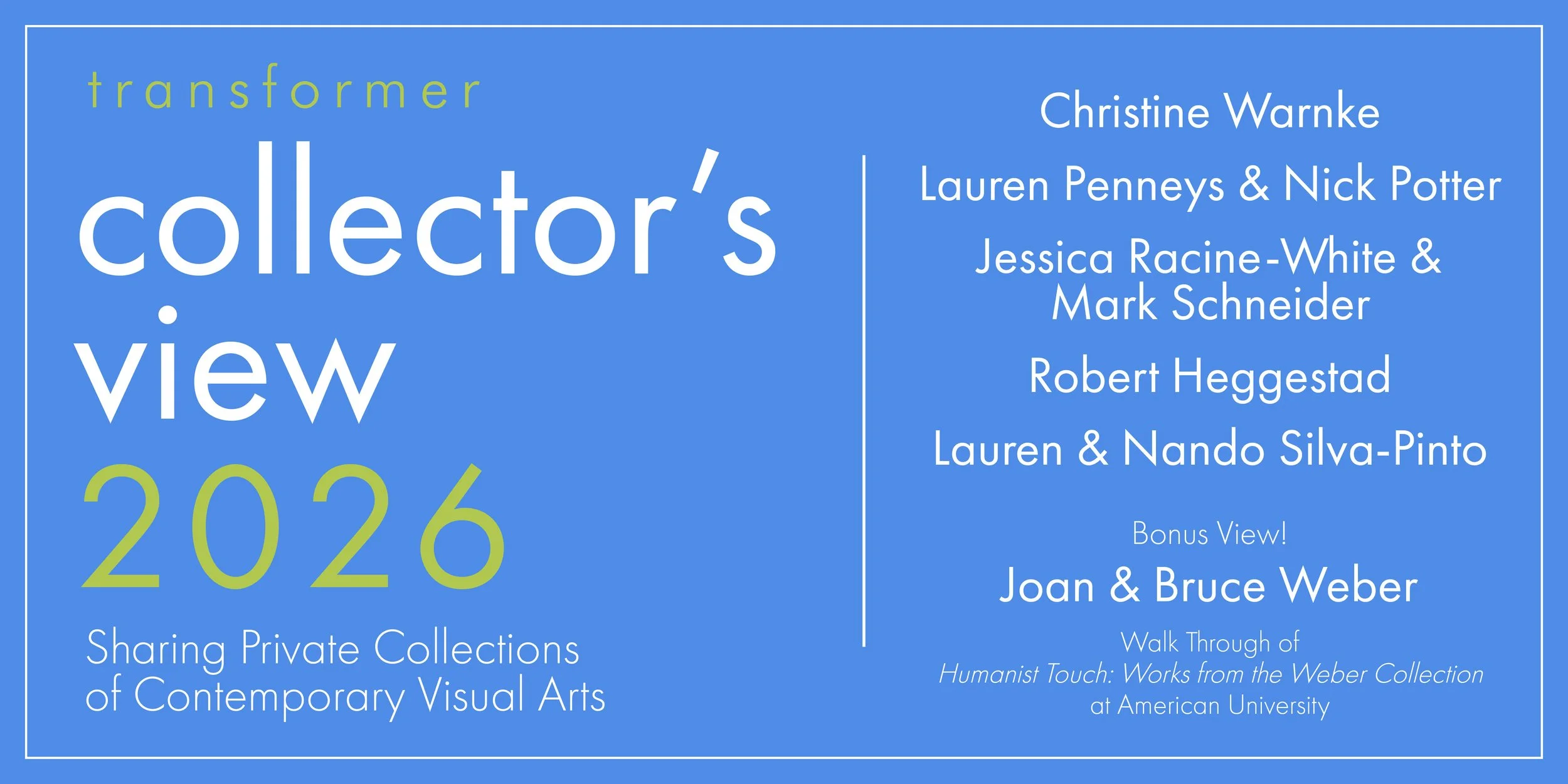 Collector’s View is both an educational and fundraising program of Transformer. Series subscriptions and Individual View ticket purchases of this innovative program advances Transformer in cultivating new audiences, builds & deepen relationships within our arts community, and propels Transformer’s mission to further support artists. Join us!